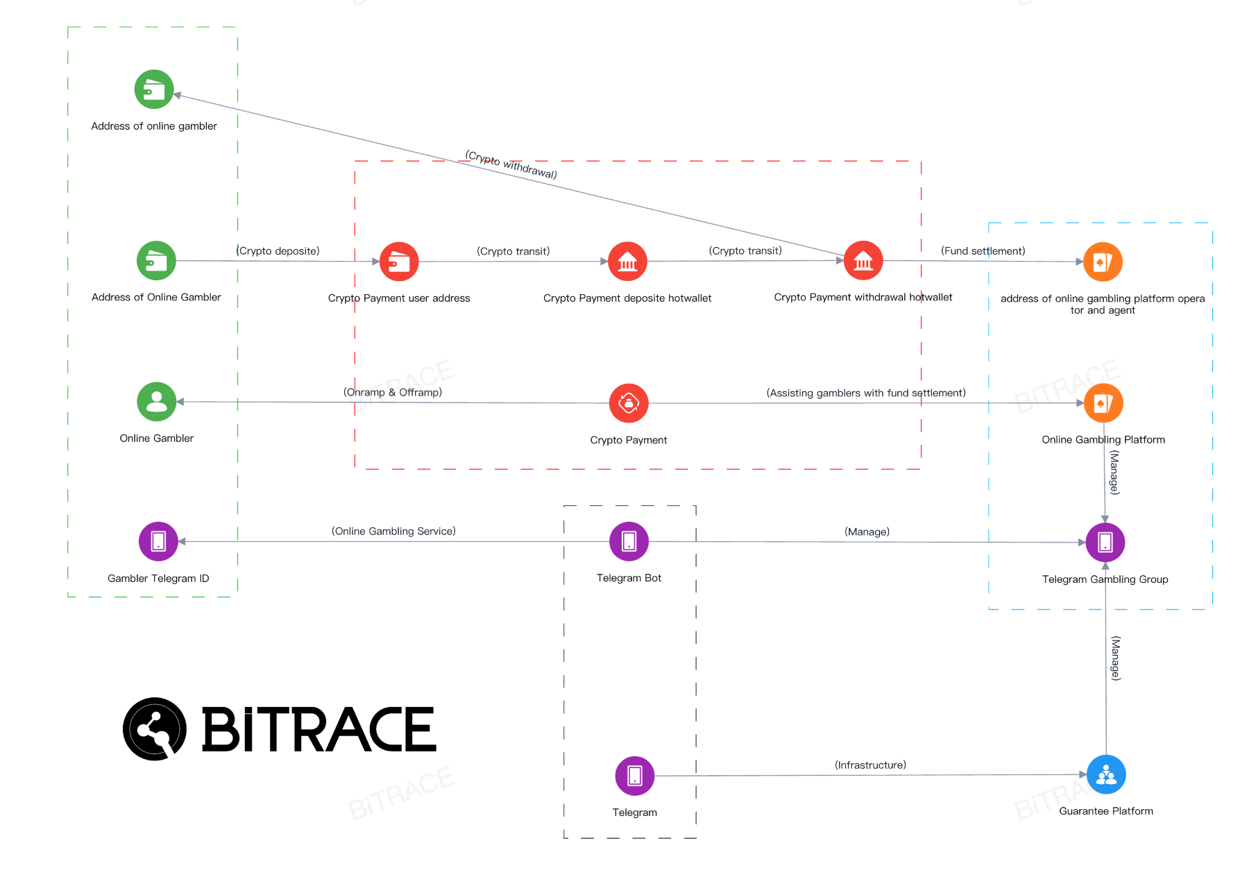 This operational model — Telegram groups layered with an illegal guarantee platform, a crypto payment tool, and an online gambling platform — is now standard across the black-market ecosystem. Intelligence professionals will find the same structure replicated at virtually every guarantee platform operating today.