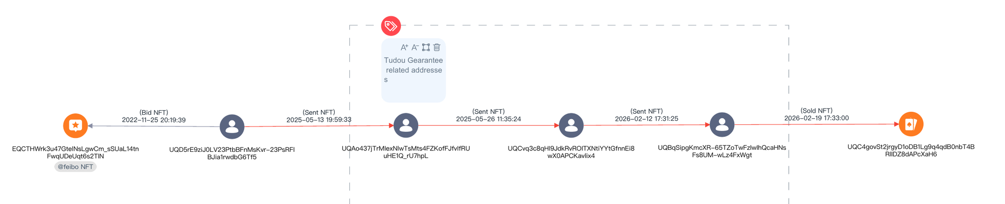 Based on OSINT and TON blockchain analysis, Bitrace is confident that @Feibo and the associated TNS handles and Telegram groups were acquired by Dali Guarantee, currently the sixth-largest platform in the market. They are now being used extensively across Dali Guarantee's Tiancheng Guarantee subsidiary and its OKPAY operations.